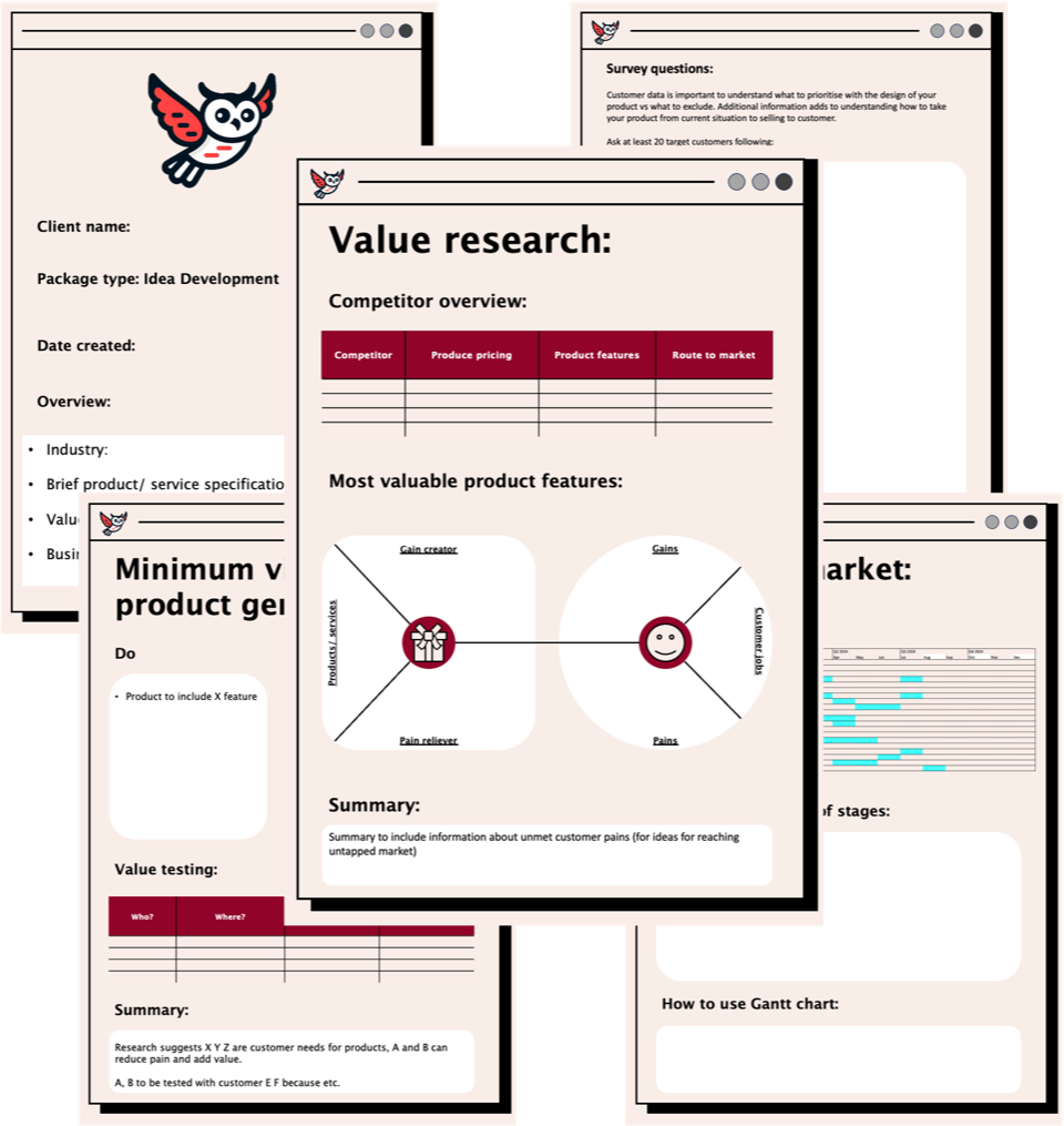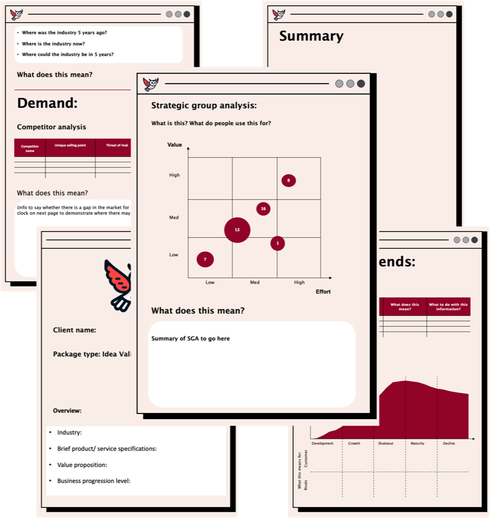 An Insight Bundle is a personalised startup guide built from real research and proven business frameworks. You tell us your idea, we analyse your market, map out your competitors, and recommend clear next steps — all explained simply.