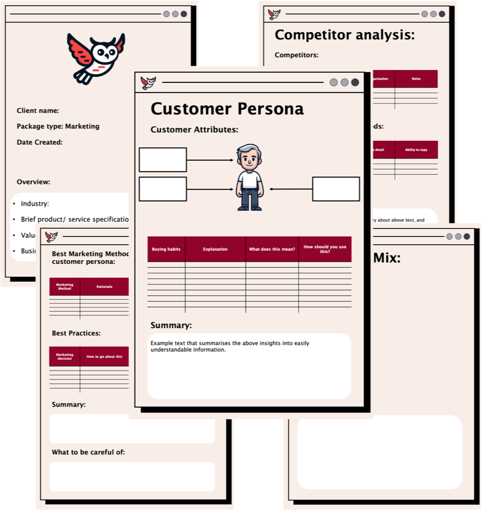 You’ll receive a PDF report + editable templates, all built around your business — no fluff. You’ll have all the insights you need, to create a business that works.